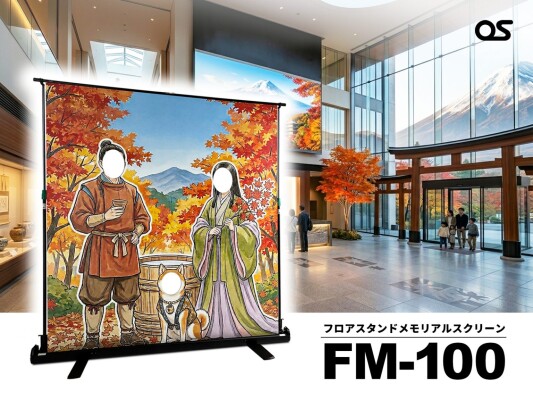 株式会社オーエス(本社:大阪、代表取締役:奥村正之)は、観光地やイベント会場で親しまれてきた記念撮影用の顔出しパネルを巻取り収納可能な自立型スクリーンとして再設計した新製品「フロアスタンドメモリアルスクリーン」(型式:FM-100)を発売いたします。