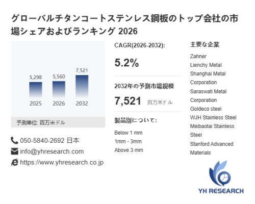 本記事は、YH Researchが発行したレポート「グローバルチタンコートステンレス鋼板のトップ会社の市場シェアおよびランキング 2026」 を紹介しています。