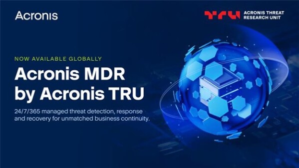 サイバープロテクションのグローバルリーダーであるアクロニスは本日、24時間365日マネージド検知・対応(MDR)サービス「Acronis MDR by Acronis TRU」の提供開始を発表しました。