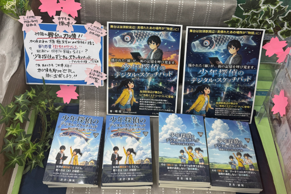 埼玉県加須市を拠点に活動する「ひとり出版社」クスノキ出版(代表・著者:楠 柾)が刊行した、加須市を舞台とするミステリー小説『少年探偵のデジタル・スケッチパッド』シリーズが、加須市立図書館での予約待ちを経て、この度、地元老舗書店での店頭販売を開始いたしました。