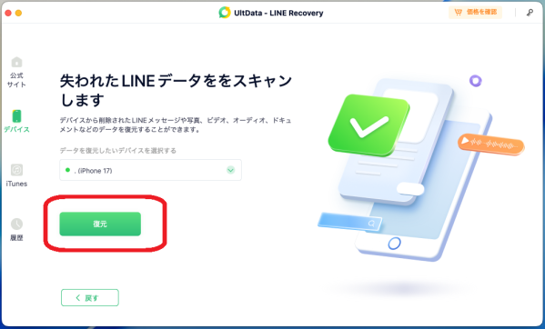方法3:専用ツール「UltData LINE Recovery」を使う
