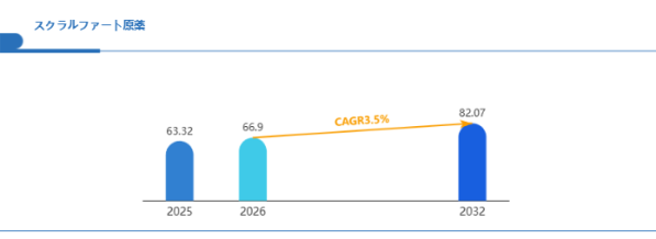 Global Reports調査チームの最新レポート「グローバルスクラルファート原薬市場規模、主要企業シェア、ランキング分析レポート【2026年版】」によると、2026年の66.9百万米ドルから2032年には82.07百万米ドルに成長し、2026年から2032年の間にCAGRは3.5%になると予測されています。