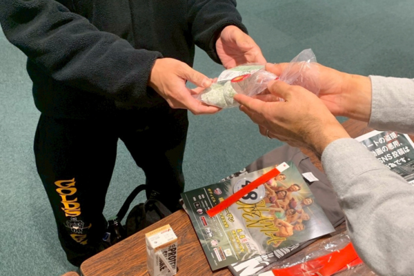 明日香野はよもぎあんこ餅をお渡ししました。大会出場にあたり3~4カ月にわたる減量と厳しい食事管理を経てきた選手の皆さまにとって、競技終了後の和菓子はまさに至福のひとときとなった様子で、とても喜んでいただけました。和菓子ならではのやさしい甘味が、緊張をほぐし、疲れを癒やし、選手・スタッフの皆さまは自然と笑顔になっていました。
