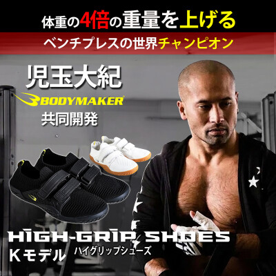昨年、応援購入サイト「Makuake」で大ヒットバカ売れした「KODAMAット」に続いて、BODYMAKERが新作【児玉大紀選手と共同開発】高いグリップ力と横ブレを抑えるベンチプレスのための専用シューズ「ハイグリップシューズKモデル」を発売する。この「ハイグリップシューズKモデル」は、ベンチプレスで足が安定しない…悩みを解決する補助グッズ。【高いグリップ力】と【安定感を追求した横ブレ抑制構造】を実現し、安定したフォームで挙げやすい!アッパー部分の素材は通気性が良く、快適にお使いいただけます。まさにベンチプレッサー待望のベンチプレス専用シューズ「ハイグリップシューズKモデル」がついに発売!4月16日(木)まず、応援購入サイト「Makuake」出店からスタートします。