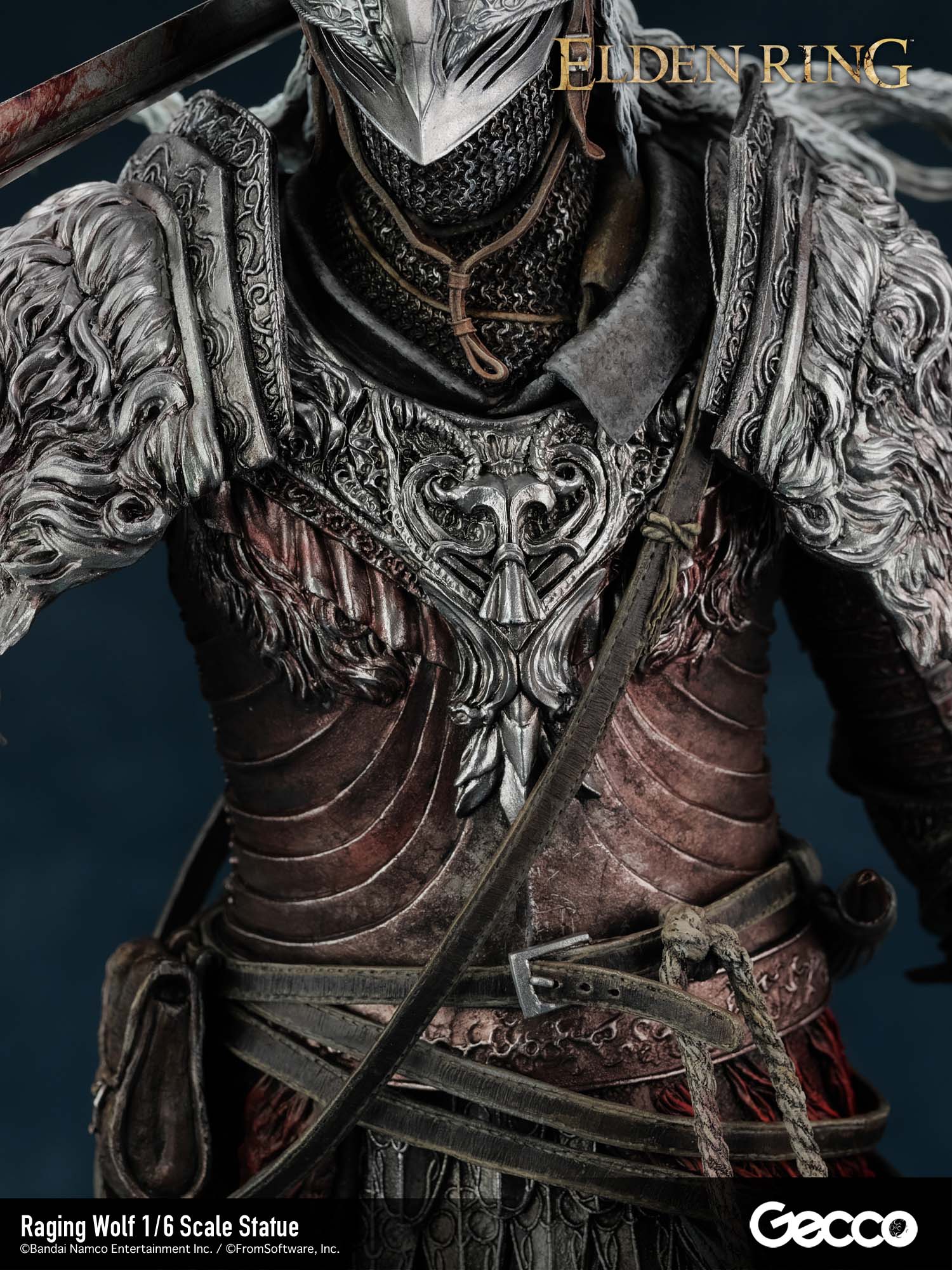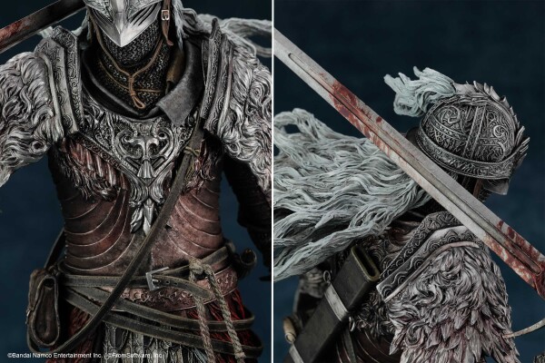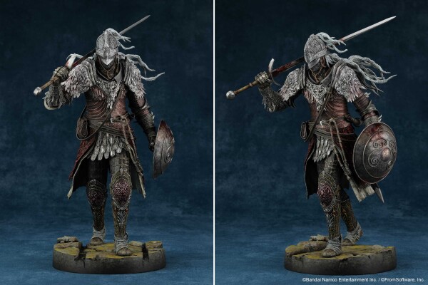 フロム・ソフトウェアによる完全監修のもと、鎧の硬質感、使い込まれた革のたわみ、そして幾多の死闘を物語る傷跡や汚れに至るまで、徹底的な造形と彩色で再現。
