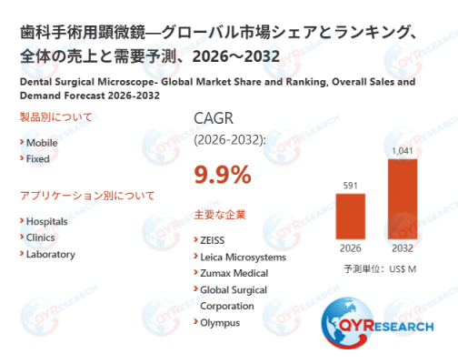本記事は、QY Research発行のレポート「歯科手術用顕微鏡―グローバル市場シェアとランキング、全体の売上と需要予測、2026~2032」に基づき、市場動向および競合分析の概要を解説します。