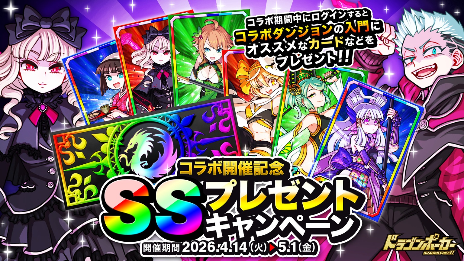 2017年4月23日以降に実施されたカムバックキャンペーンにて、ログインせずに受取れなかった竜石がまとめて手に入ります。2017年4月23日以降のカムバックキャンペーン期間中、ログインしていないユーザーに最大で竜石3299個をプレゼント!さらに、2025年12月27日以降にドラゴンポーカーを始めたユーザーにも竜石3299個プレゼント!これを機会に、ログインして大量の竜石をGETしましょう。また、いつも『ドラゴンポーカー』をプレイして頂いているユーザーの皆様には感謝を込めて、「SSレアガチャチケット1枚」をプレゼントいたします。