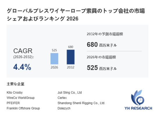 本記事は、YH Researchが発行したレポート「グローバルプレスワイヤーロープ索具のトップ会社の市場シェアおよびランキング 2026」 を紹介しています。
