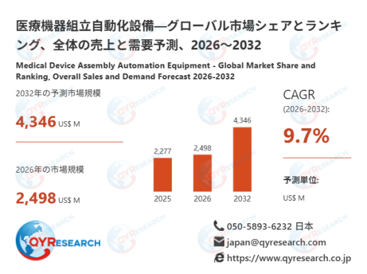 本記事は、QY Research発行のレポート「医療機器組立自動化設備―グローバル市場シェアとランキング、全体の売上と需要予測、2026~2032」に基づき、市場動向および競合分析の概要を解説します。