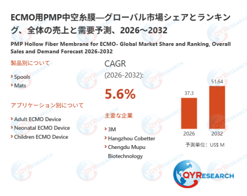 本記事は、QY Research発行のレポート「ECMO用PMP中空糸膜―グローバル市場シェアとランキング、全体の売上と需要予測、2026~2032」に基づき、市場動向および競合分析の概要を解説します。