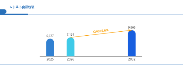 単身世帯や高齢者の増加により、手軽に調理できる食品の需要はさらに高まると考えられます。レトルト食品包装は、調理負担を軽減しながら保存性を確保できるため、日常食としての利用拡大が期待されます。