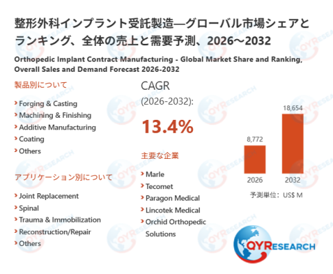 本記事は、QY Research発行のレポート「整形外科インプラント受託製造―グローバル市場シェアとランキング、全体の売上と需要予測、2026~2032」に基づき、市場動向および競合分析の概要を解説します。