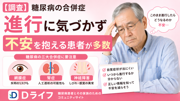 糖尿病患者とその家族のためのコミュニティサイト『Dライフ( https://diabeteslife.jp )』を運営する合同会社MYASIA Entertainmentは、このたび糖尿病の合併症や症状の進行に関する相談傾向と検索動向をもとに、ユーザーの声を整理した調査結果をまとめました。「糖尿病と診断されたあと、症状が進行するとどうなるのか」という不安を抱えたまま情報を探している方が多く、合併症リスクへの理解不足が当事者の心理的負担につながっている実態が見えてきました。