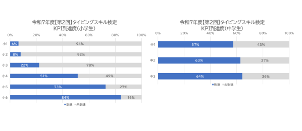 中学生ではいずれの学年も約4割の生徒がKPI未到達で、タイピングスキルの底上げが継続的な課題となっています。