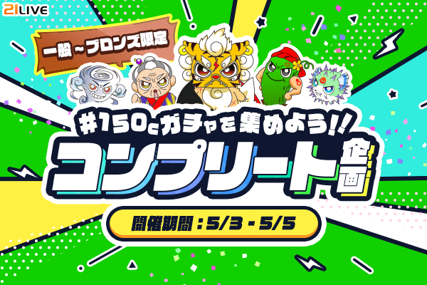 21LIVEでは、5月3日(日)より3日間限定で『150Cガチャを集めよう!!コンプリート企画』を開催します。