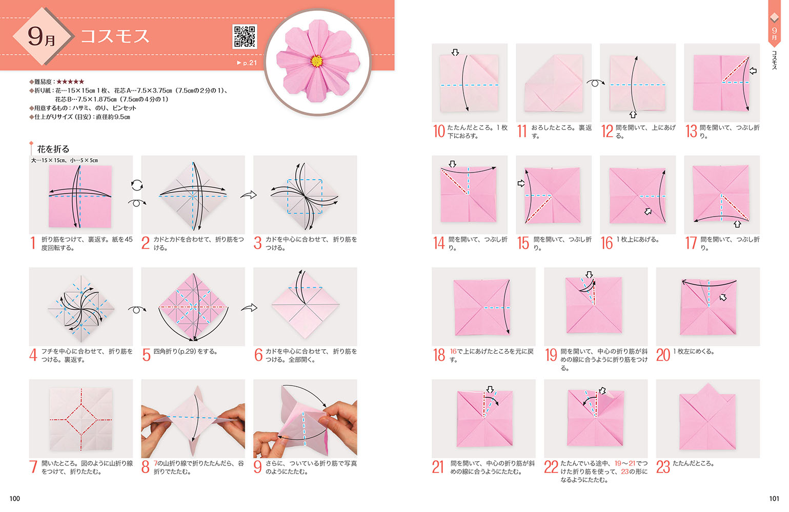 季節の花を、一枚の紙から。動画・写真・解説で、はじめてでも美しく折れる花折り紙。
