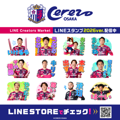 大阪の大人気Jリーグチーム「セレッソ大阪」の2026年ver.のLINEスタンプ最新作が、インクルーズの販売アカウントより配信開始!是非、LINEスタンプでも「セレッソ大阪」の世界観をお楽しみください。