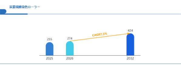 Global Reports調査チームの最新レポート「グローバル炭素繊維染色ローラー市場規模、主要企業シェア、ランキング分析レポート【2026年版】」によると、2026年の274百万米ドルから2032年には424百万米ドルに成長し、2026年から2032年の間にCAGRは7.5%になると予測されています。