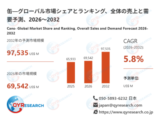 本記事は、QY Research発行のレポート「缶―グローバル市場シェアとランキング、全体の売上と需要予測、2026~2032」に基づき、市場動向および競合分析の概要を解説します。