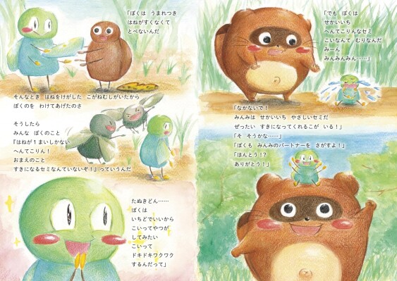 まんまるな“たぬきどん”は、羽が一枚しかないセミの“みんみ”に出会います。