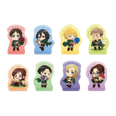 今回、オリジナル描き下ろしとなったエレンやミカサ、リヴァイ、エルヴィンたちが缶バッジやアクリルスタンドとなって登場。その他、「リヴァイ兵士長のセリフメモ」や「アルミンの“一生かけても取りつくせないほどの”塩」など、ファン必見で小ネタ満載のオリジナルグッズ全36アイテムを販売いたします。