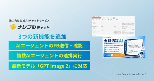 AIサービスやシステム開発を手掛けるCLINKS株式会社(本社:東京都中央区、代表取締役:河原浩介)が提供する法人向け生成AIチャットサービス「ナレフルチャット」において、2026年4月23日(木)より大型アップデートを実施いたしました。AIエージェントの回答内容や精度、利用ユーザーからのフィードバックを収集して確認・改善できる「利用者フィードバック機能」、複数のAIエージェントを連携させる「エージェント連続実行機能」、そして日本語テキストの正確な描画や高い一貫性を実現する、OpenAIの最新画像生成モデル「GPT Image 2」の3つを新たに追加しました。