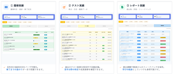 ①入力負荷ゼロで履修・テスト・課題実績を自動集約