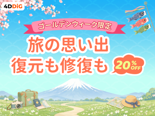 データ復元・修復ソフトを提供する4DDiGは、2026年ゴールデンウィークに合わせて、「GW限定キャンペーン」を開催いたします。