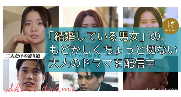 「友達以上、恋人未満」といわれるセカンドパートナーよりもさらに手前の、ちょっぴりエモい男女の交流を描くショートドラマを、既婚者同士の心をつなぐコミュニティサイト