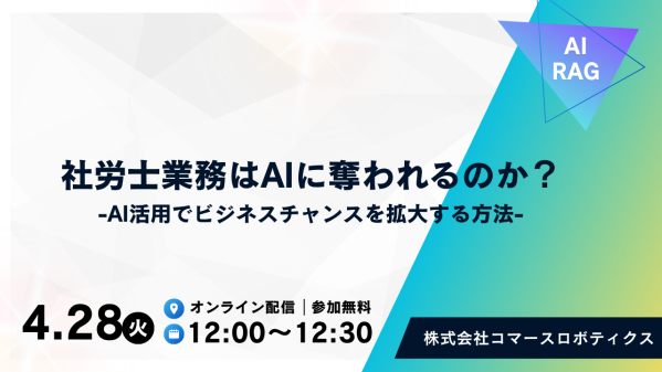 株式会社コマースロボティクス(本社:東京都港区、代表取締役:伊藤彰弘)は、社労士事務所向けに、生成AIを活用して労務業務の効率化と売上拡大を実現することをテーマとした無料オンラインウェビナーを開催いたします。