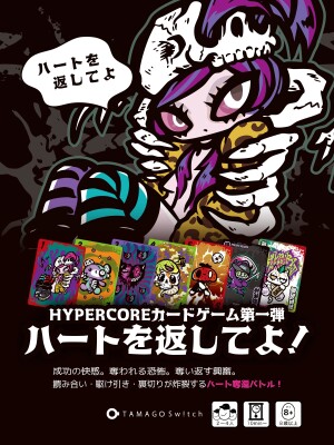 本商品は、HYPERCOREの人気デザイン〈ハートを返してよ〉をコンセプトに、HYPERCOREによるパンキッシュな描き下ろしキャラクターと、TAMAGO Switchによる読み合い・駆け引き・逆転要素のあるゲーム性を掛け合わせた、コラボレーションならではのカードゲームです。