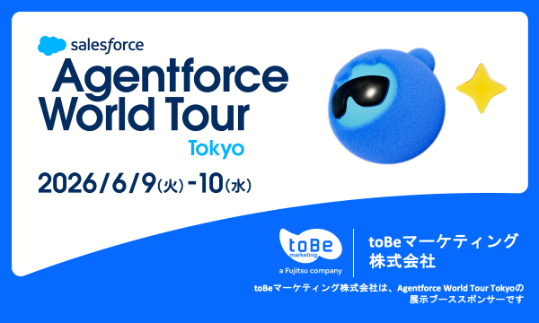toBeマーケティングは、2026年6月9日(火)- 10日(水)に開催されるイベント『Agentforce World Tour Tokyo 2026』に出展いたします。