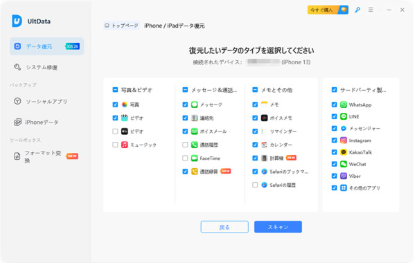 Tenorshare UltData for iOSは安全・強力・信頼できるiPhone/iPad向けデータ復元ソフトです。