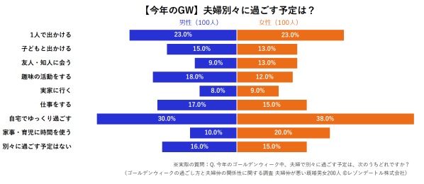 最後に、今年のGWにおいて、仲が悪い夫婦は別々にどのように過ごす予定なのかを見ていきます。