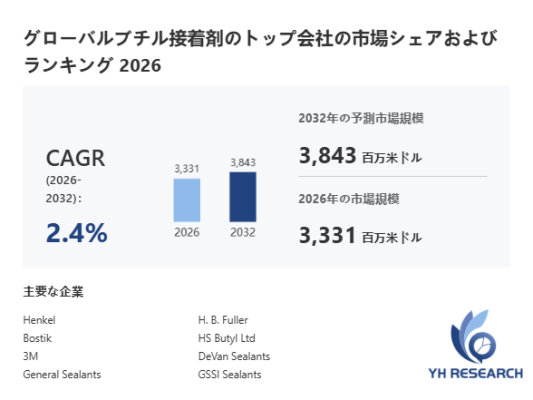 本記事は、YH Researchが発行したレポート「グローバルブチル接着剤のトップ会社の市場シェアおよびランキング 2026」 を紹介しています。