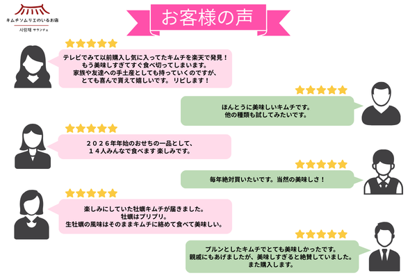 キムチソムリエ監修の、今しか味わえない特別な逸品です。メディアでも多数紹介され、多くのお客様よりご好評いただいております。