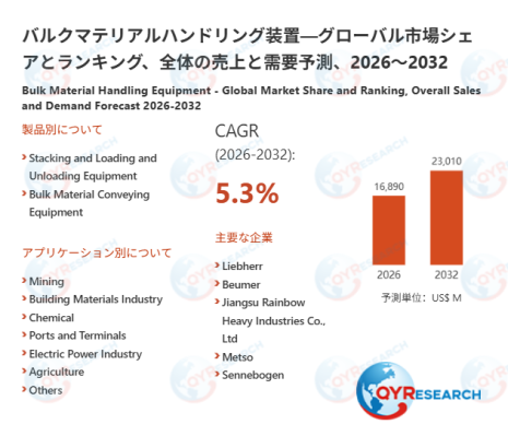 本記事は、QY Research発行のレポート「バルクマテリアルハンドリング装置―グローバル市場シェアとランキング、全体の売上と需要予測、2026~2032」に基づき、市場動向および競合分析の概要を解説します。
