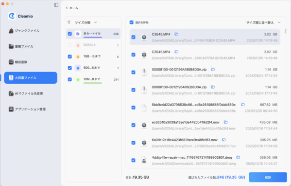 Tenorshare Cleamioなら、ジャンクファイルや大きなファイルを自動検出し、効率よく削除できます。