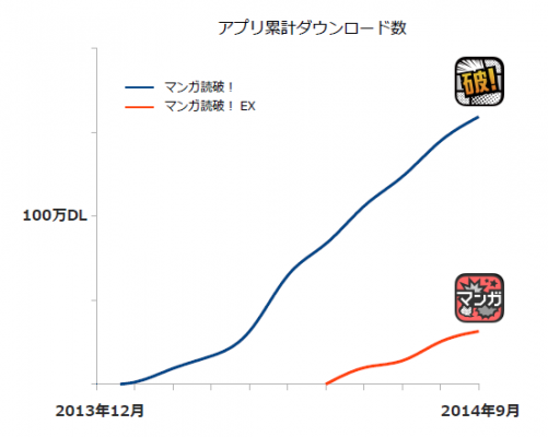 アプリの累計ダウンロード数は、「マンガ読破!」165万件、「マンガ読破!EX」35万件を超えました。