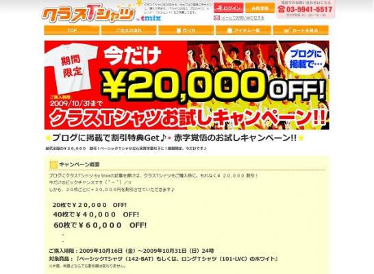 ブログにクラスTシャツ-by tmixの記事を書けば、クラスTシャツをご購入時に、もれなく¥ 20,000 割引!