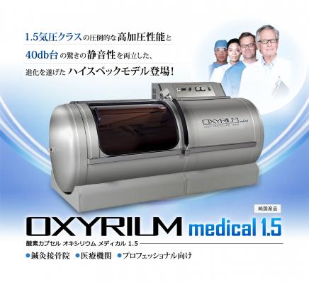 [酸素カプセル OXYRIUM MEDICAL1.5]は、国内最高気圧1.5気圧が可能であり