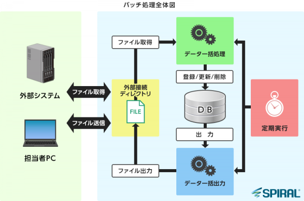 外部システムから、外部接続ディレクトリにデータを設置し、毎日定時に「スパイラル(R)」に差分更新する。
