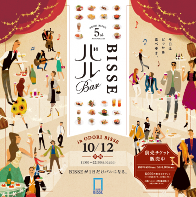 北海道・札幌の大通ビッセでは、大通ビッセ5周年のスペシャルイベントをより楽しんでいただくために、2015年9月14日(月)から「BISSEバル(10/12開催)」の前売チケット(3,500円)の発売を開始したところ、多くのお客さまから反響をいただいております。