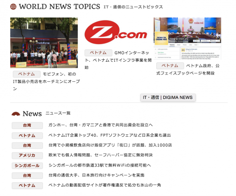 そこで、この11月に大幅なリニューアルを実施し、『DIGIMA NEWS』(https://www.digima-news.com/)という新サイトとして生まれ変わりました。ご覧頂ければ分かるように、大幅にデザインを刷新し、読みやすく、記事を探しやすい構成になりました。気になる国のニュースをチェックすることが可能です。