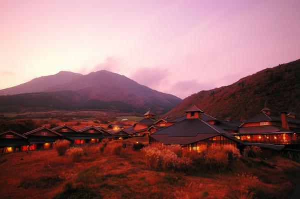 九州の屋根、阿蘇くじゅう国立公園内に位置し、くじゅう連山の山すその大自然に溶け込むように佇むリゾートホテル。