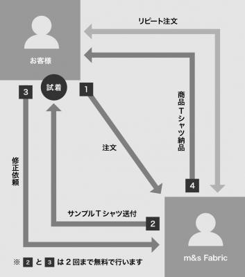 以下は当社テイラーT シャツのご注文から納品までの流れとなります。
