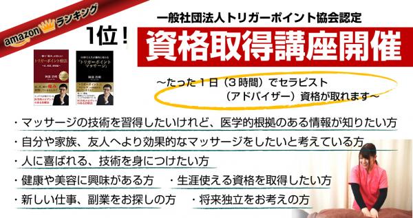 Amazon書籍ランキング1位になった「トリガーポイント療法」を基礎から学び認定セラピスト(アドバイザー)資格を取得しませんか?