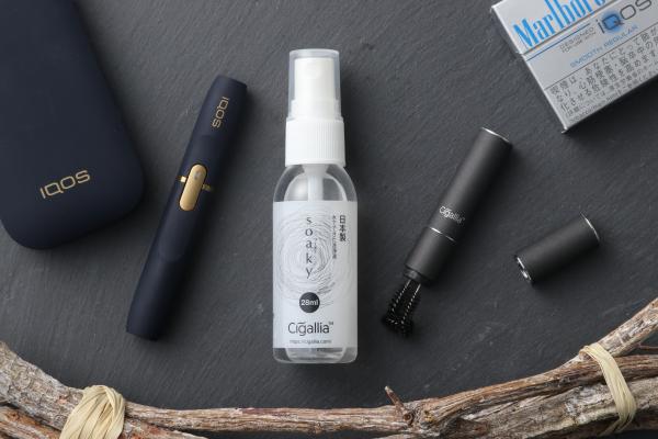 その問題を解決するべく、当社が独自の電子タバコブランド「Cigallia(シガリア)」から2018年9月27日に新発売した、加熱式タバコ洗浄液「soaky(ソーキー)」は、綿棒などに含ませることで手軽に、頑固な焦げ付き・ヤニ汚れを除去することが出来ます。