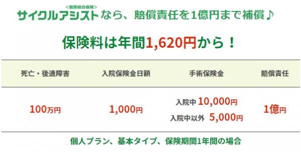 年間保険料1,620円(月々135円)からお申込みいただくことができます。