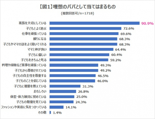 ・理想のパパの条件として当てはまるもの 第1位は「家族を大切にしている」で90.9%